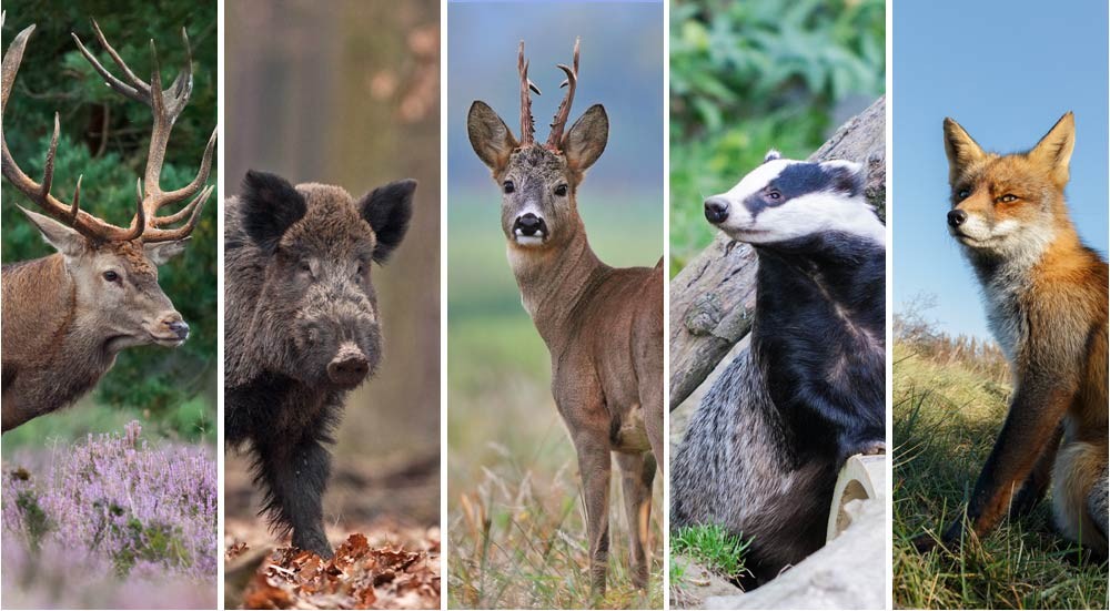 Edelhert, Wild Zwijn, Ree, Das en Vos